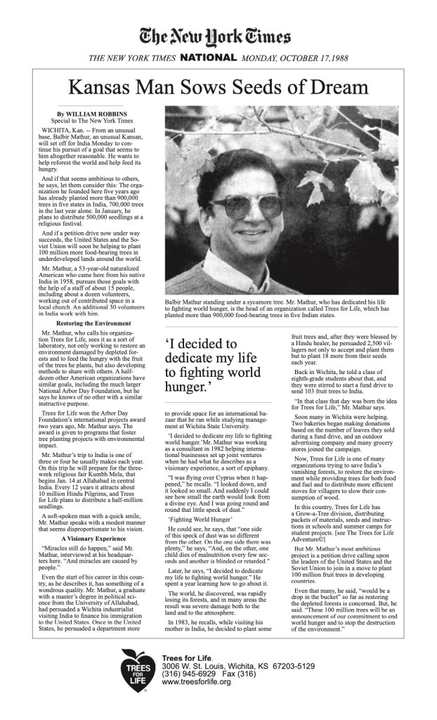 News Articles The New York TimesOctober 1988 Hinduism and Ecology: Seeds of Truth1996 Animation World MagazineMarch 1997 The RotarianApril 1997 The Wichita EagleMay 2000 McPherson College ReviewJuly 2004 The Daily TimesMalawi, AfricaApril 2005 School of MetaphysicsSeptember 2009 Global Journal of Community Psychology PracticeJanuary 2010 The Wichita EagleMay 2014 Kansas City StarMay 2014 KMUW Editorial Commentary by Richard CrowsonNovember 2014
